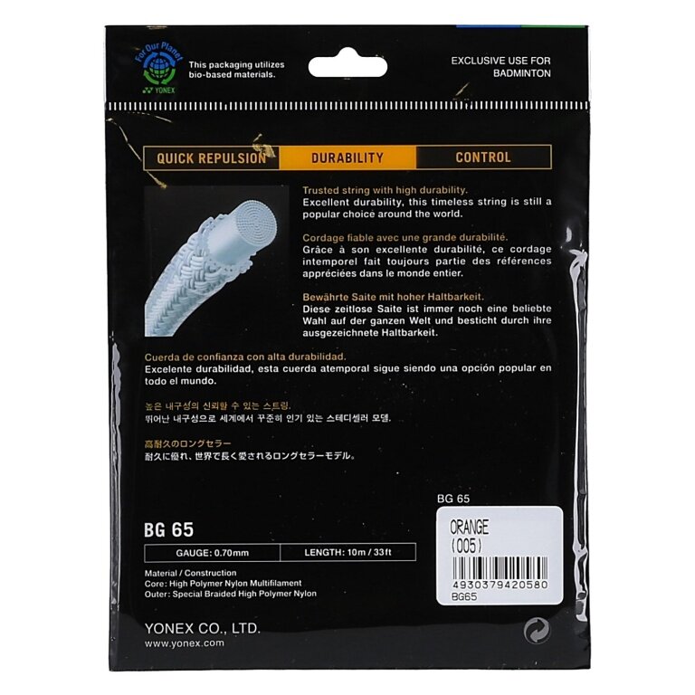 Yonex Badminton String BG65 (Allround+Durability) orange Set 10m