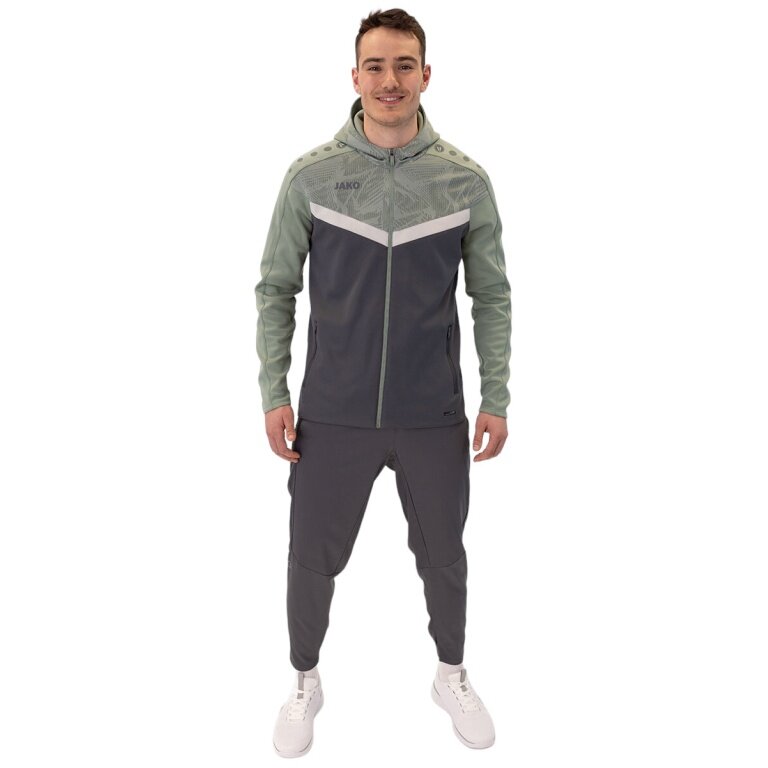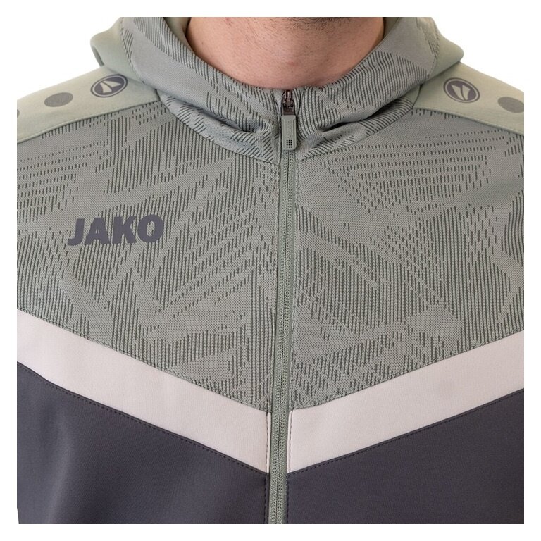 JAKO Hooded Jacket Iconic (Polyester Fleece, Side Pockets with Zip) Anthracite Grey/Mint Green Men