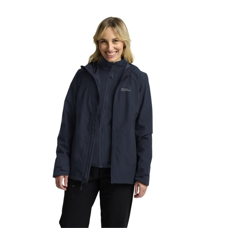 Jack Wolfskin All-Season Jacket Moonrise 3in1 2025 (waterproof and windproof, with fleece inner jacket) midnight blue/sky blue ladies