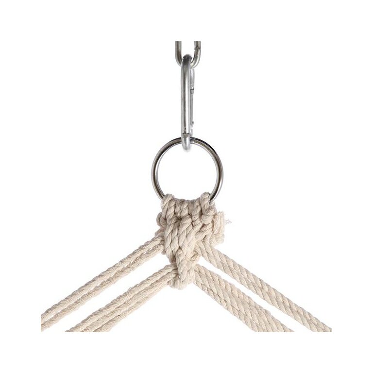 - in combination with the thick woven, sturdy ropes, a solid wooden frame, and a metal handle, the maximum load capacity of the hanging chair is 120 kg