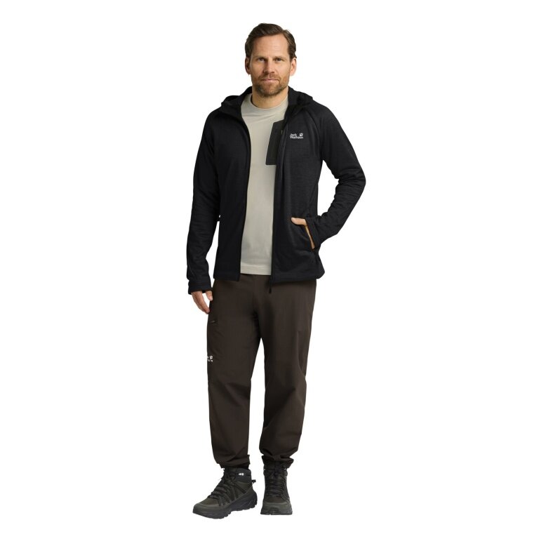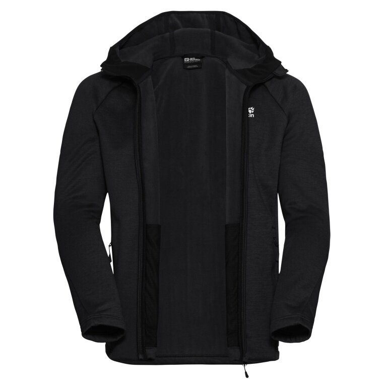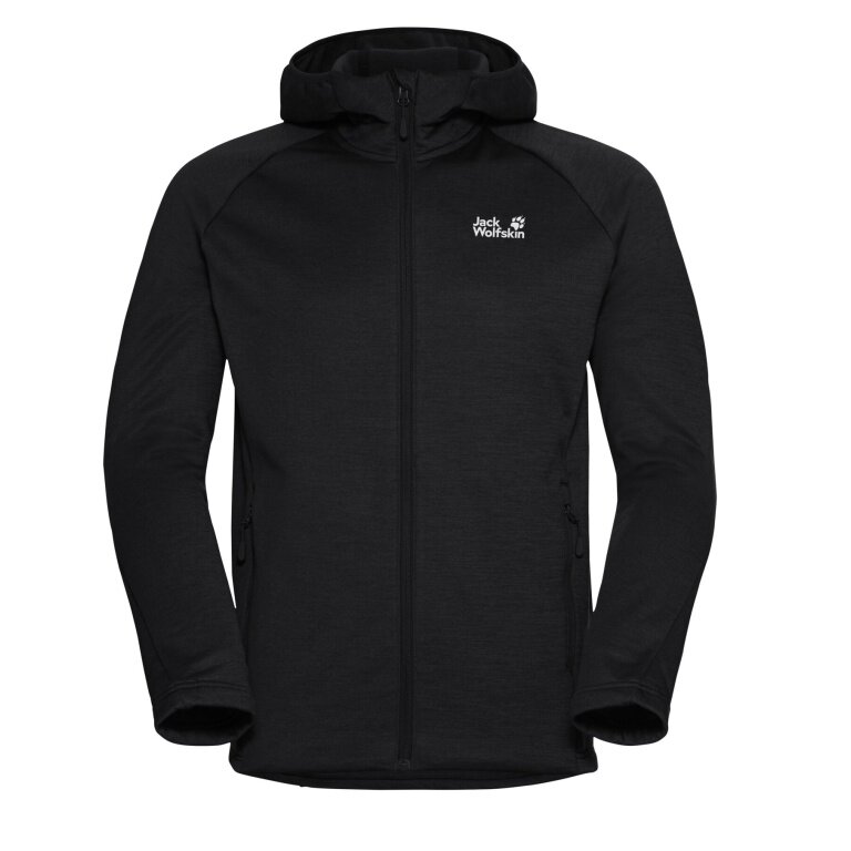 Jack Wolfskin Fleece Jacket Peak District Hooded Full Zip (comfortable to wear, warm) black men's