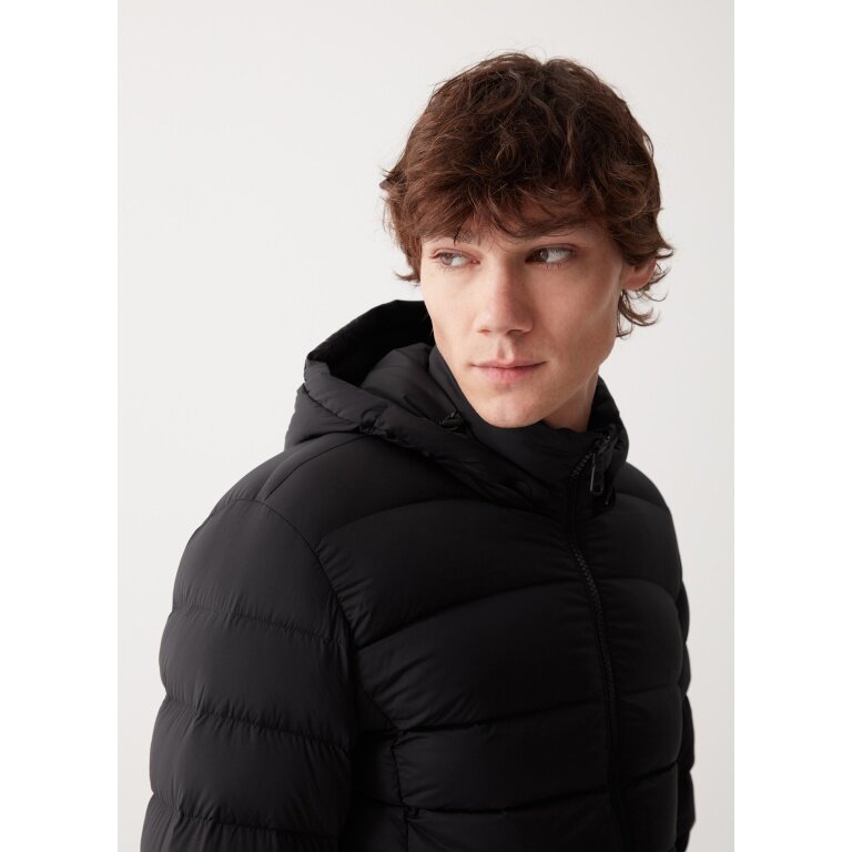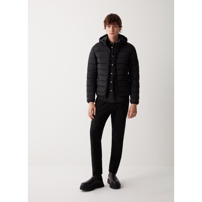 - Men's jacket with detachable hood, made from super lightweight fabric with water-repellent treatment and filling of real down