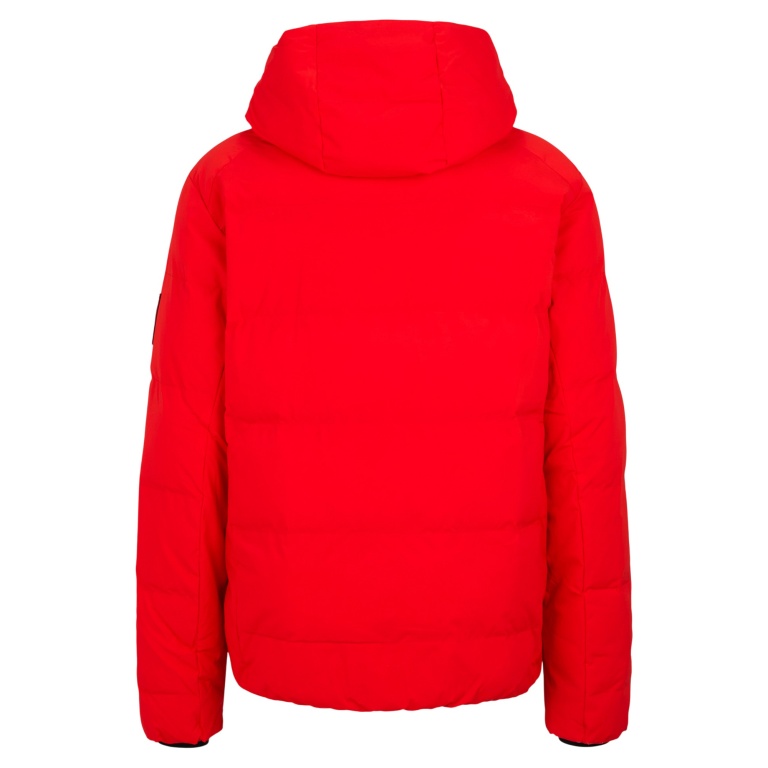 - the outer fabric is bluesign® certified. Technical details such as the fixed, adjustable functional hood, elastic inner cuffs, and numerous features like pockets for ski and sunglasses as well as for the smartphone and a ski pass pocket contribute to the high functional comfort of this ski jacket