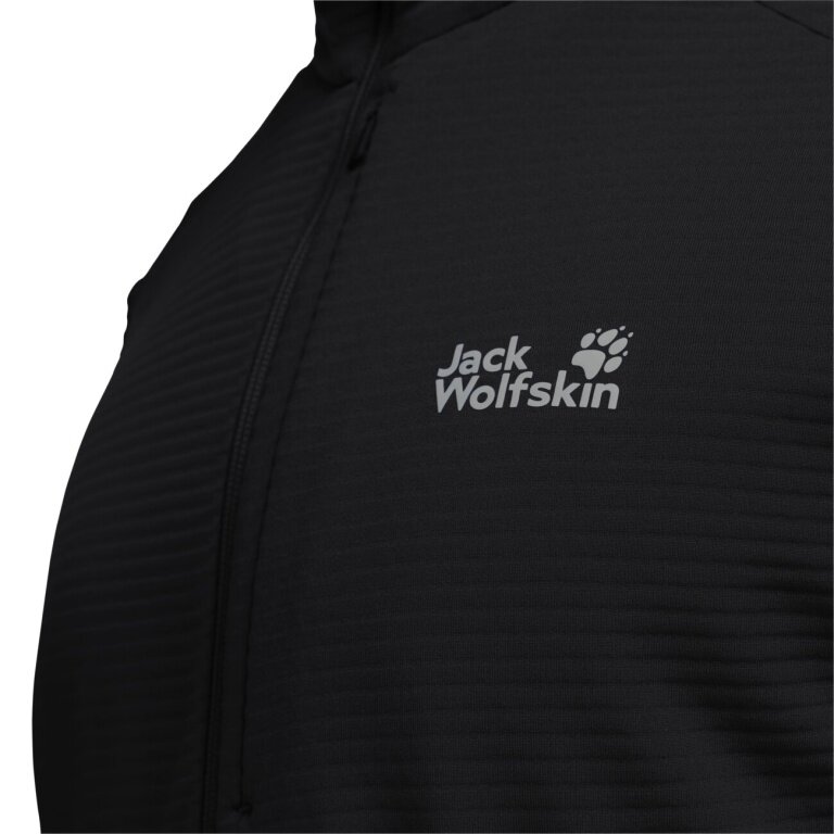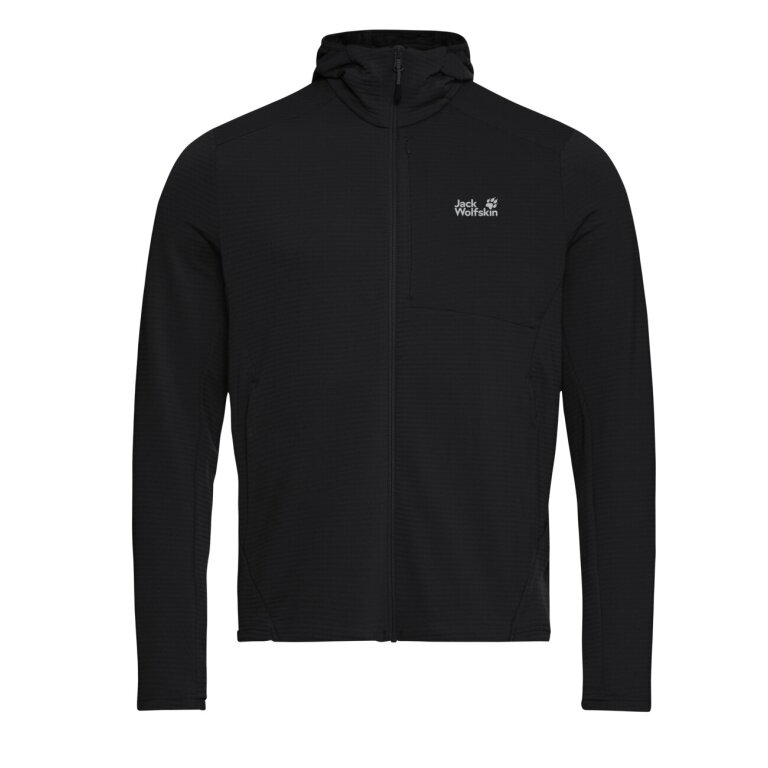 Jack Wolfskin Litestride Hooded Full Zip Fleece Jacket (with hood, elastic material) black men's