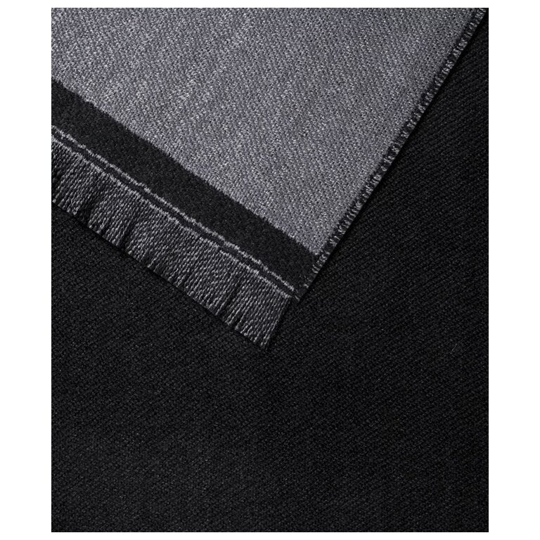 • solid-coloured web scarf made from pure merino wool with fringes and woven falcon lettering