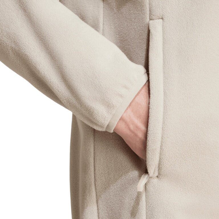 • this adidas hiking jacket made of soft, cuddly polar fleece keeps you pleasantly warm during outdoor adventures and in the city. You can store important small items in the side zip pockets, while the rucksack-friendly shoulder seams provide extra comfort.