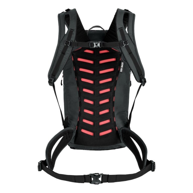 • the EVA padding with generous 3D ventilation channels reduces the contact areas between the rucksack and the back, ensuring ideal air circulation and ventilation while still providing a close and secure fit