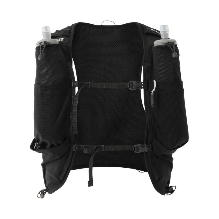 • this small backpack with shoulder strap is made for trail running and offers space for a hydration bladder and two included soft flasks