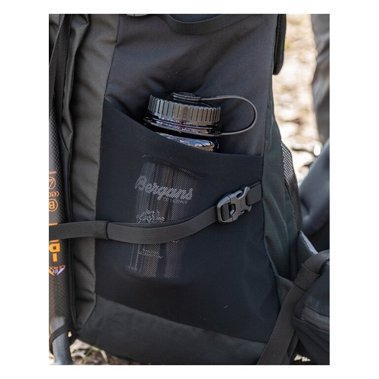- on the outside of the backpack, there are attachment options for trekking poles or ice axes, as well as several loops for securing additional equipment.