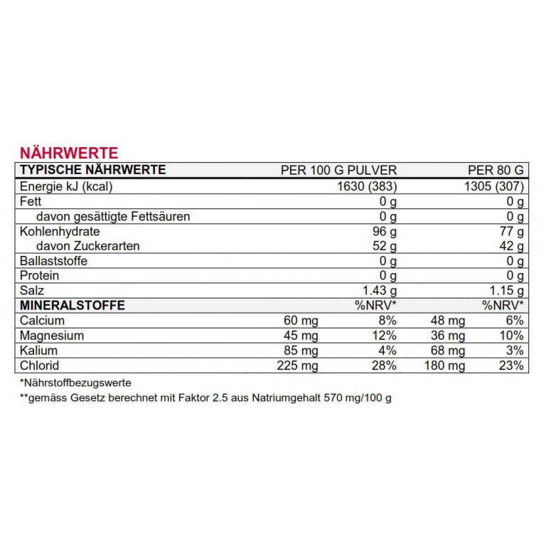 - Application: Sports drink for the highest energy needs and demands
