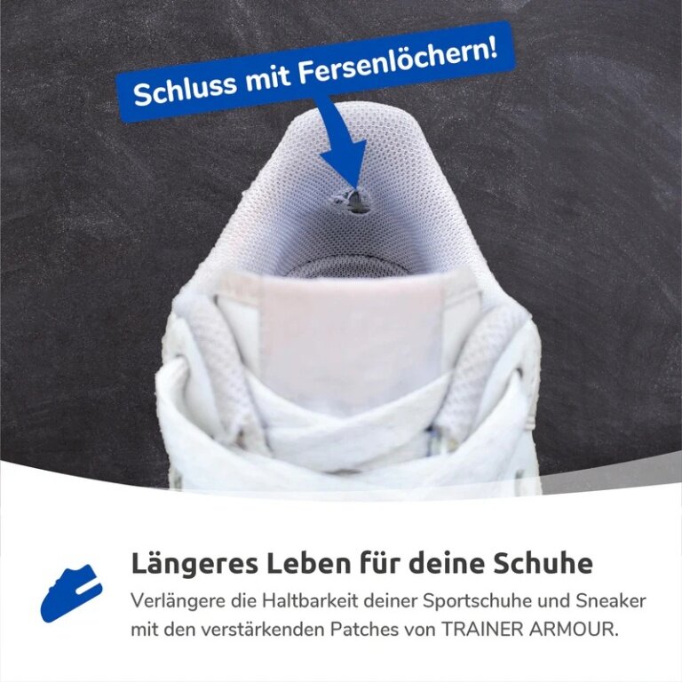 - the heel hole preventer from TRAINER ARMOUR is an extremely robust, self-adhesive patch that effectively prevents the heel area of shoes or boots from wearing out due to friction