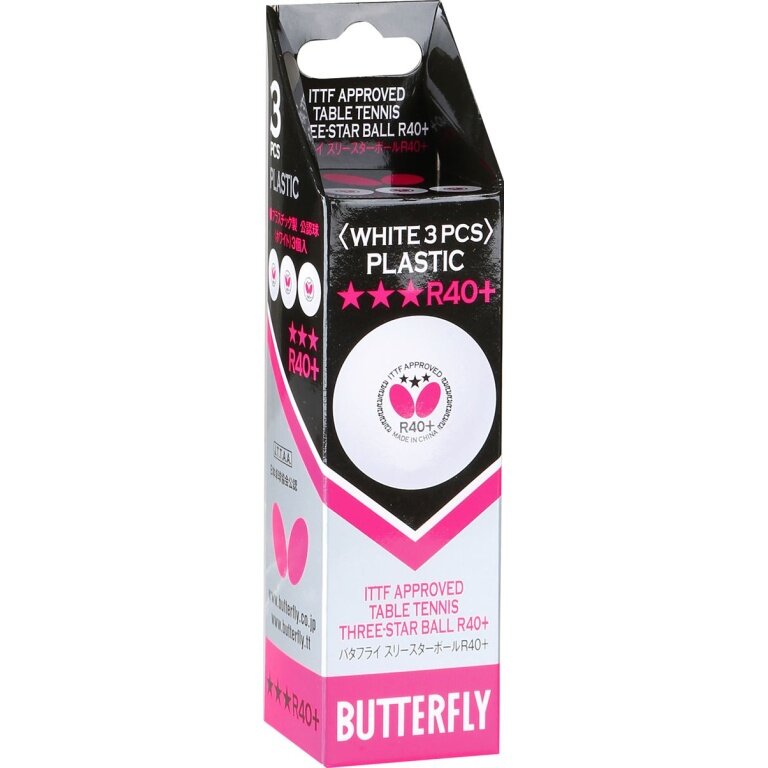 Butterfly Table Tennis Ball 3 Star R40+ (Plastic Ball 40+, ITTF approved) white 3-pack cardboard packaging