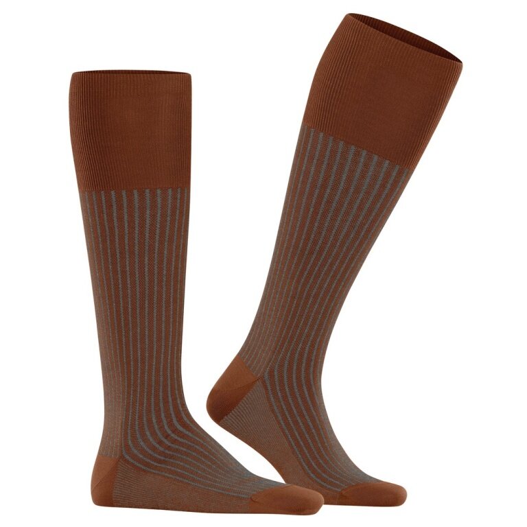 Falke Day Sock Oxford Stripe Knee Socks (Business Knee Sock, fine mesh pattern) brown men - 1 pair