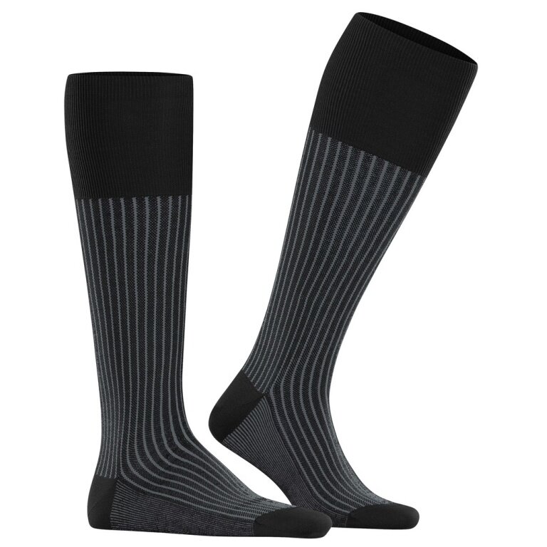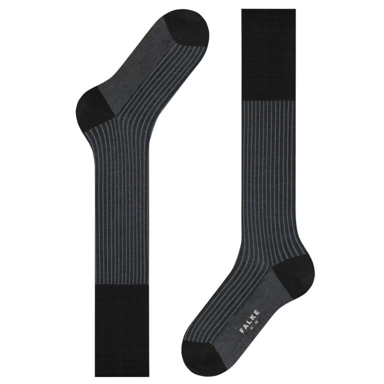 Falke Day Sock Oxford Stripe Knee Socks (Business Knee Sock, fine mesh pattern) black Men - 1 Pair