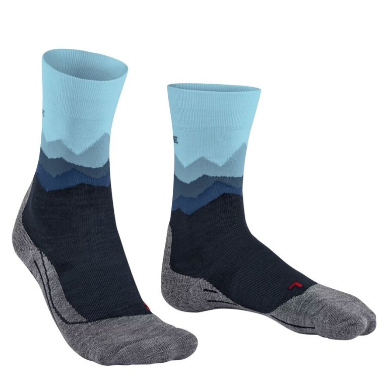 • the mountain silhouette incorporated in the shaft in various color shades makes the hiking sock a real eye-catcher