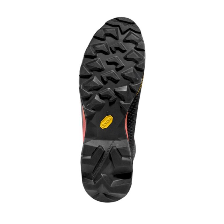 extraordinary walking ability thanks to the innovative Double Heel™ heel construction: the geometry with very pronounced double rear lugs increases braking effect when descending, allows for a smoother roll-off, and reduces muscle fatigue