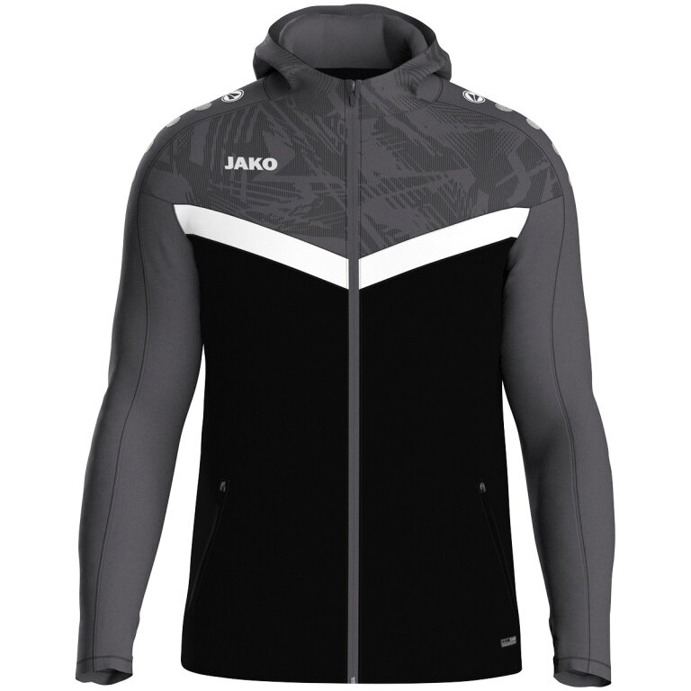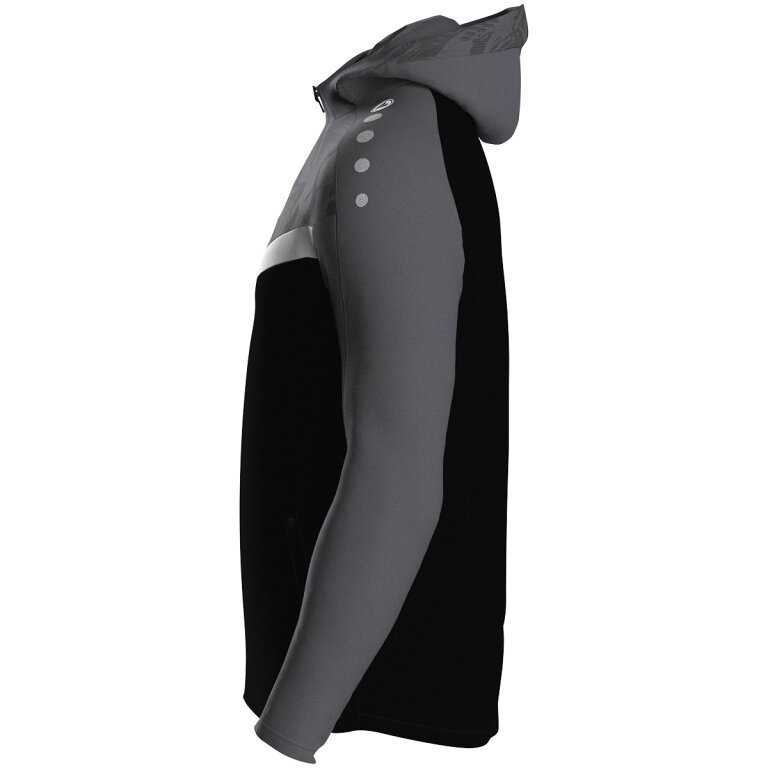 JAKO Hooded Jacket Iconic (Polyester Fleece, Side Pockets with Zip) black/anthracite grey Children