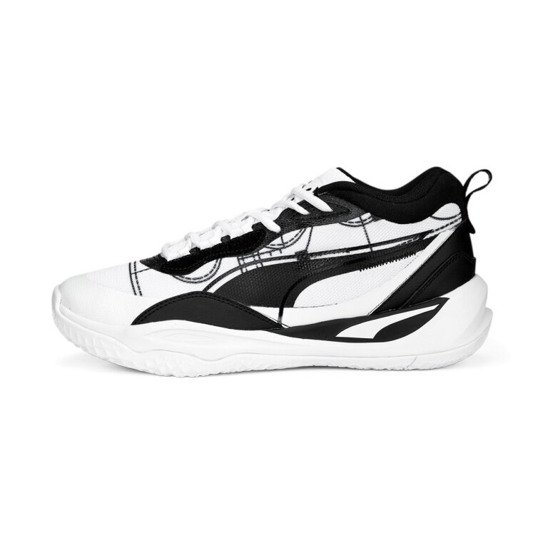 the Playmaker Pro draws DNA from the Puma Hoops line and packages midsole branding and lifestyle overlays in a performance package that can be played at the highest level