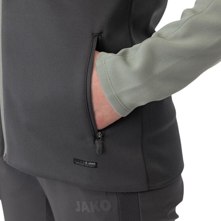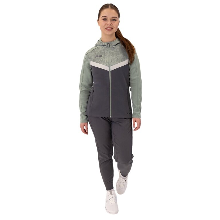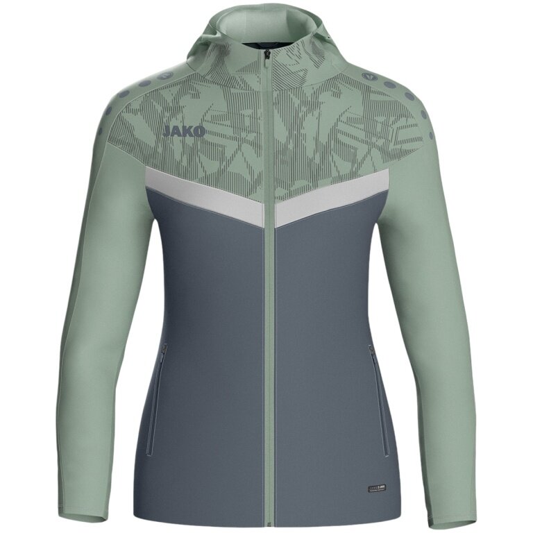 JAKO Iconic Hooded Jacket (Polyester Fleece, Side Pockets with Zip) Anthracite/Mint Green Ladies