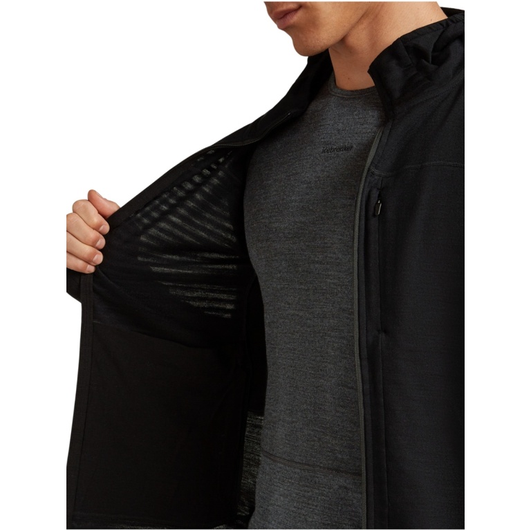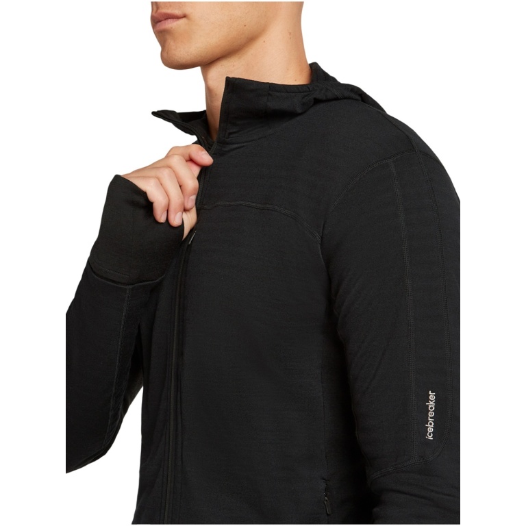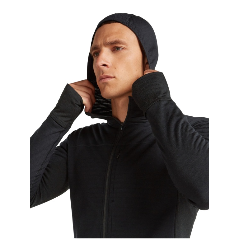 Icebreaker Descender Merino Blend 300 RealFleece Fleece Jacket with Hood (Merino Wool, Breathable) Black Men's