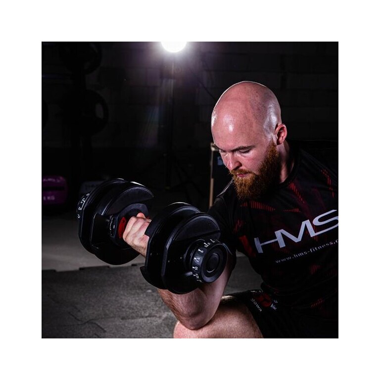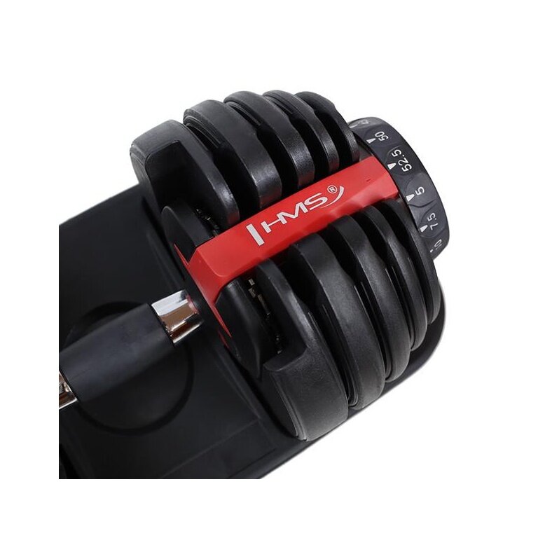 - the adjustable dumbbells from the HMS brand are an innovative solution for strength training enthusiasts – 10 weight plates allow for any adjustment of the load, depending on the user's needs.