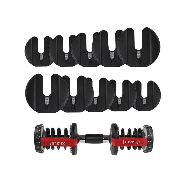 HMS Fitness Adjustable Dumbbell SR52 (10 weight plates, 2.2 - 23.8 kg)