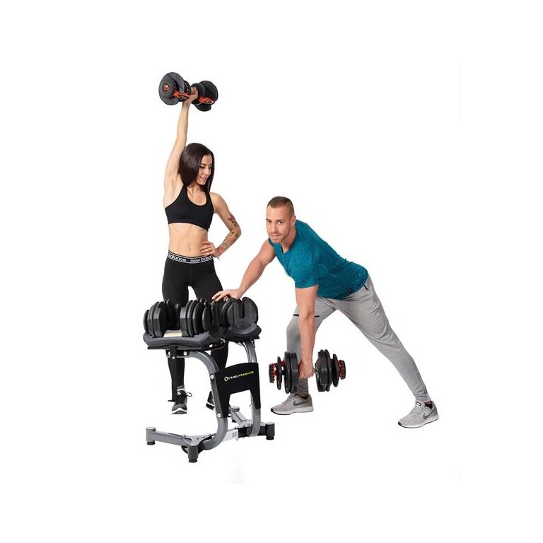 - in the SR52 model, you can place the dumbbell on the station and change the load using two adjustment knobs.