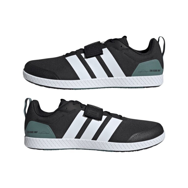this adidas weightlifting shoe has been designed for uncomplicated lifting and features a flat heel area to allow for the low stance preferred by many powerlifters.