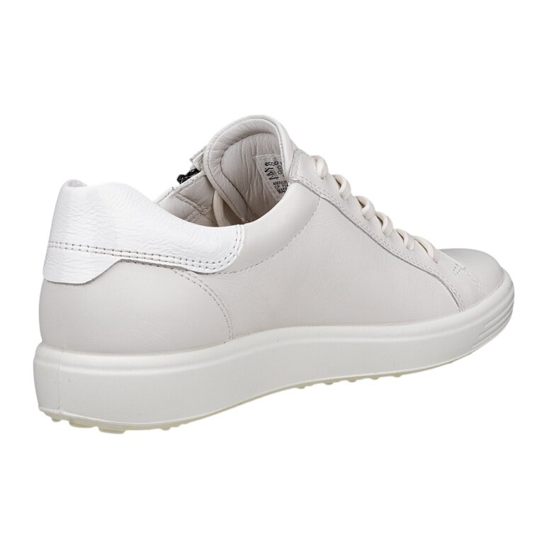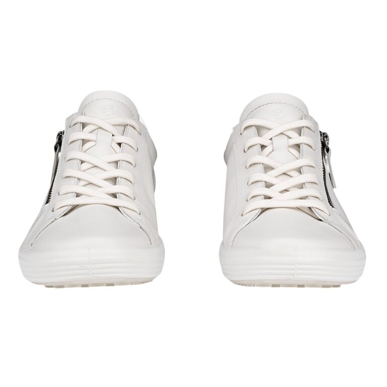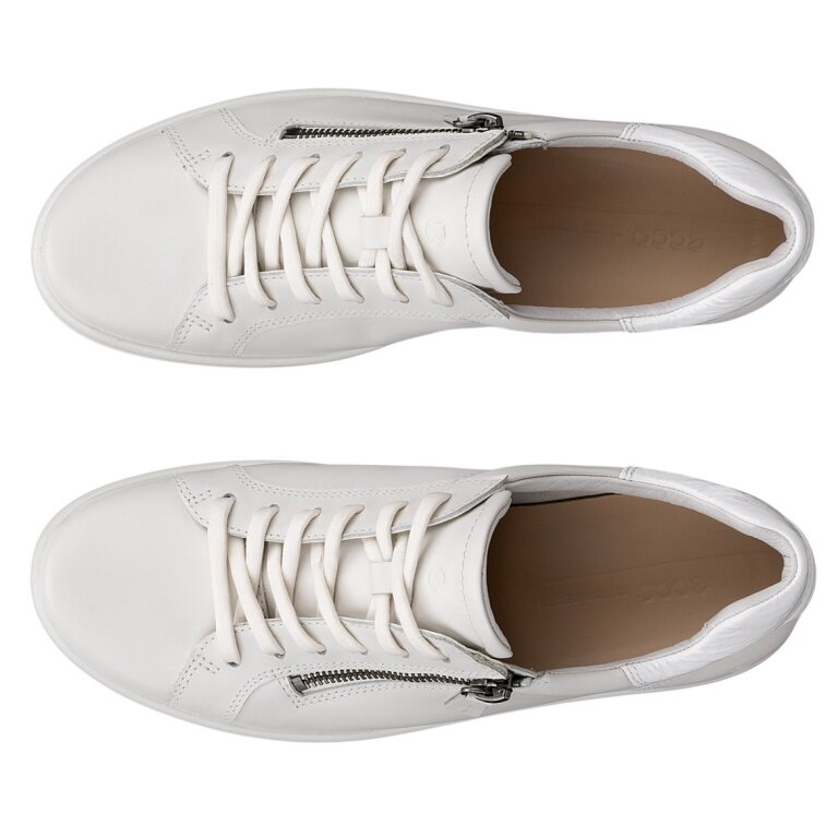 ECCO Soft 7 Side Zip Lace Sneakers (Premium Full-Grain Leather) white ladies
