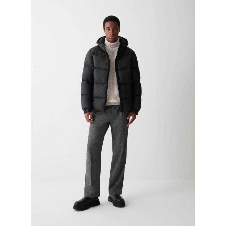 - Men's jacket with fixed hood made of matte ripstop fabric with a soft feel and water-repellent treatment