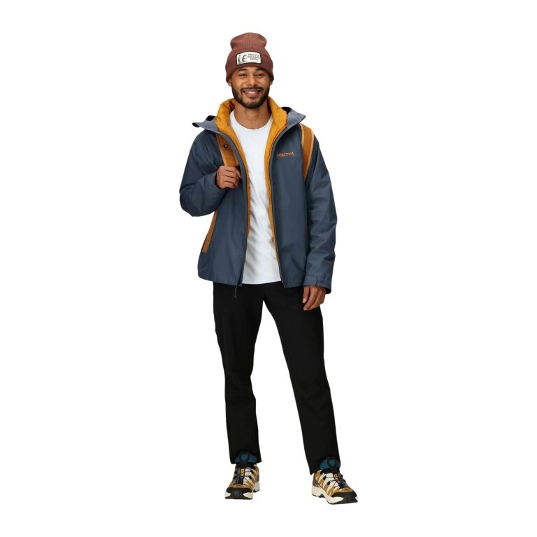 Marmot Hiking Jacket/Rain Jacket Minimalist Pertex 3in1 (Hard Shell, waterproof) grey-blue/yellow Men's