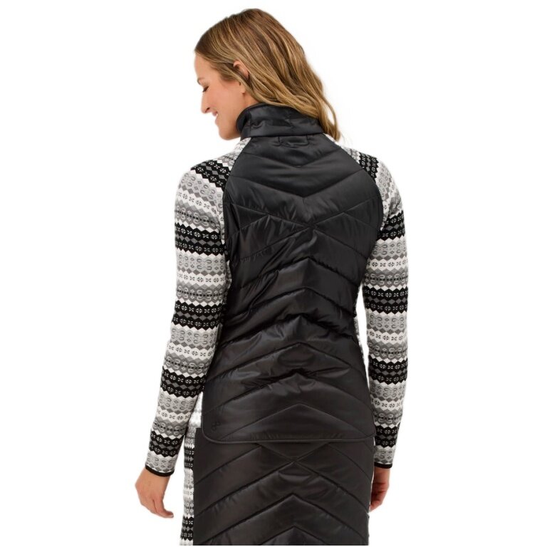 - It is designed as an intermediate layer and features knitted sleeves and a lightly insulated, quilted body.