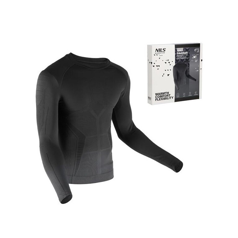 Nils Functional Underwear Long Sleeve Shirt Ragnar (Moisture Transport, High Wearing Comfort) Black Men's
