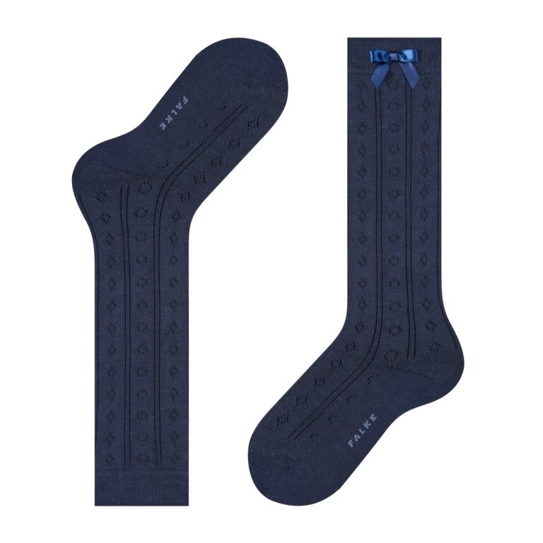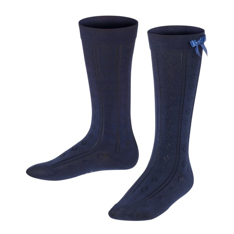 Falke Knee Socks Ajour (made of cotton, Ajour pattern) navy blue girls - 1 pair