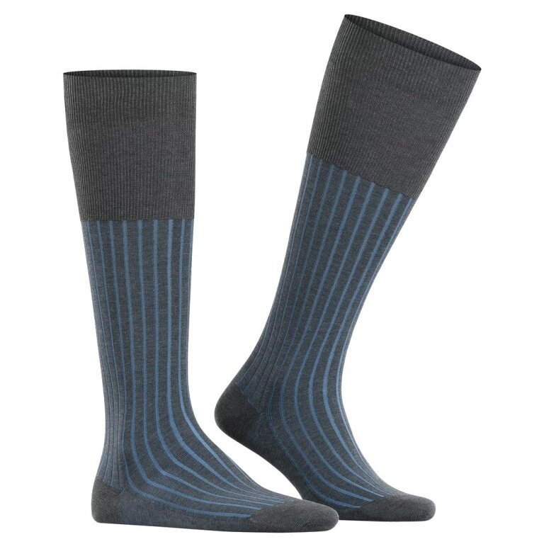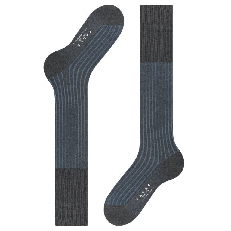 Falke Knee Socks Shadow (Business Sock, Cotton) anthracite grey/blue Men - 1 Pair