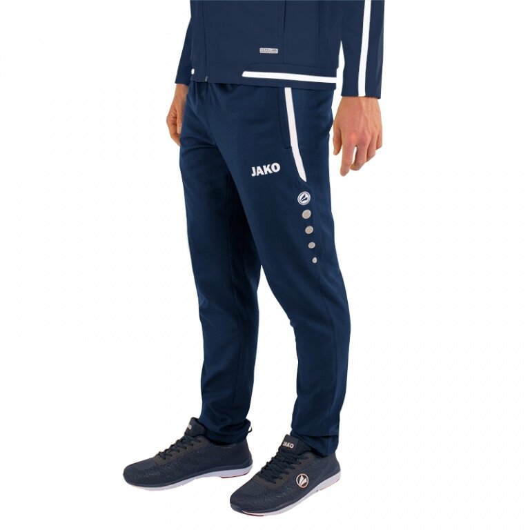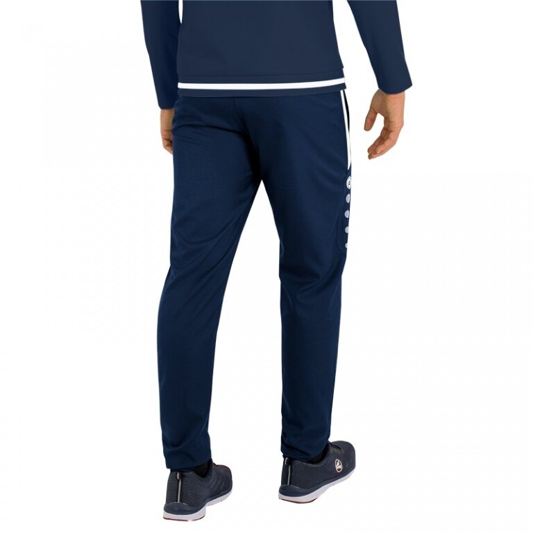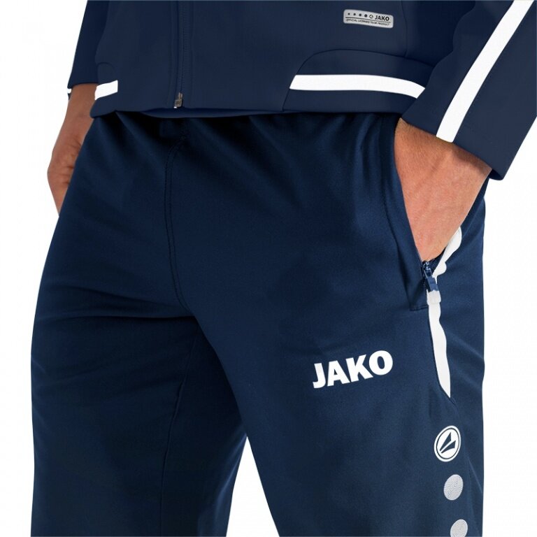 - on the presentation pants, the typical contrast stripes for the line are combined with the JAKO dots on the sides of the legs