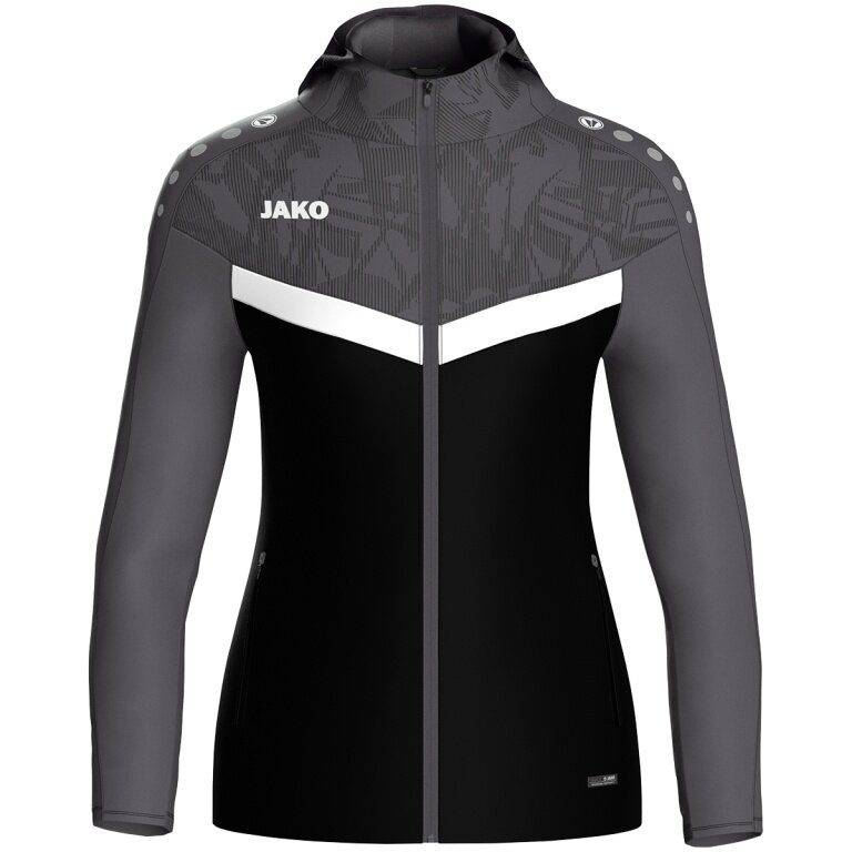 JAKO Iconic Hooded Jacket (Polyester Fleece, Side Pockets with Zip) black/anthracite grey Ladies