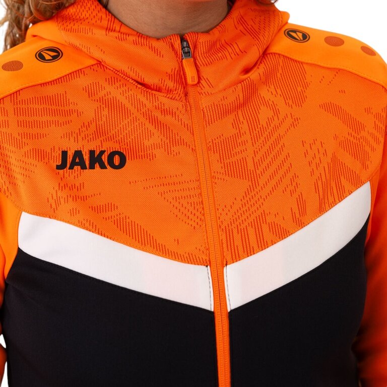 JAKO Iconic Hooded Jacket (Polyester Fleece, Side Pockets with Zipper) black/neon orange Ladies