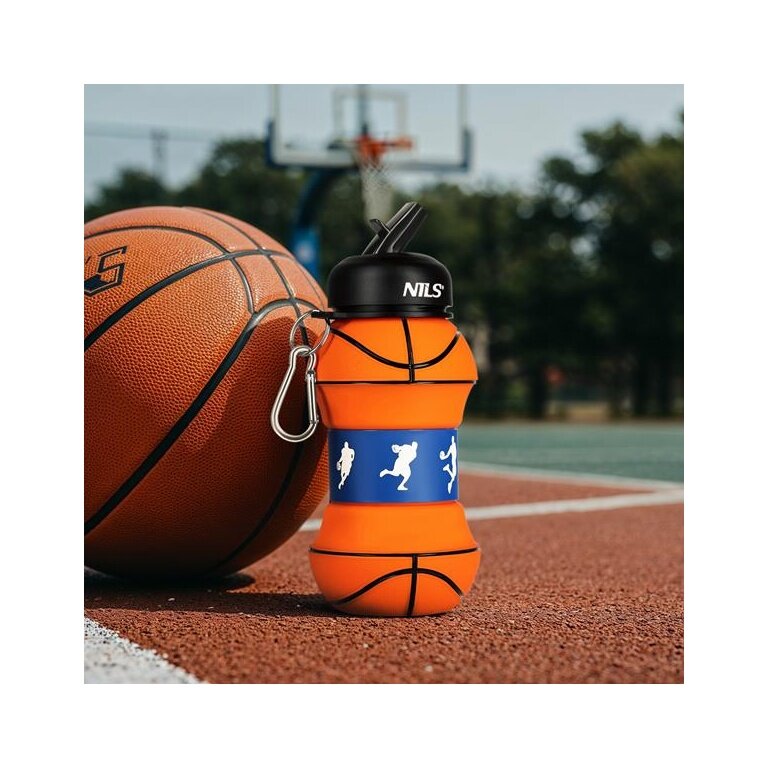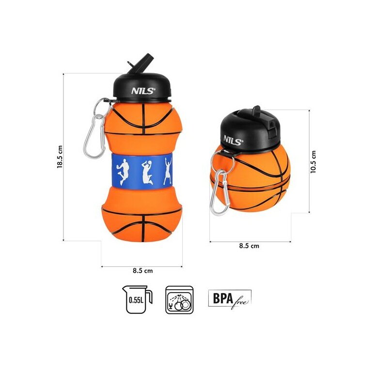 Nils Camp Water Bottle NC4104 Basketball Design (Silicone Folding Cup) 550ml orange