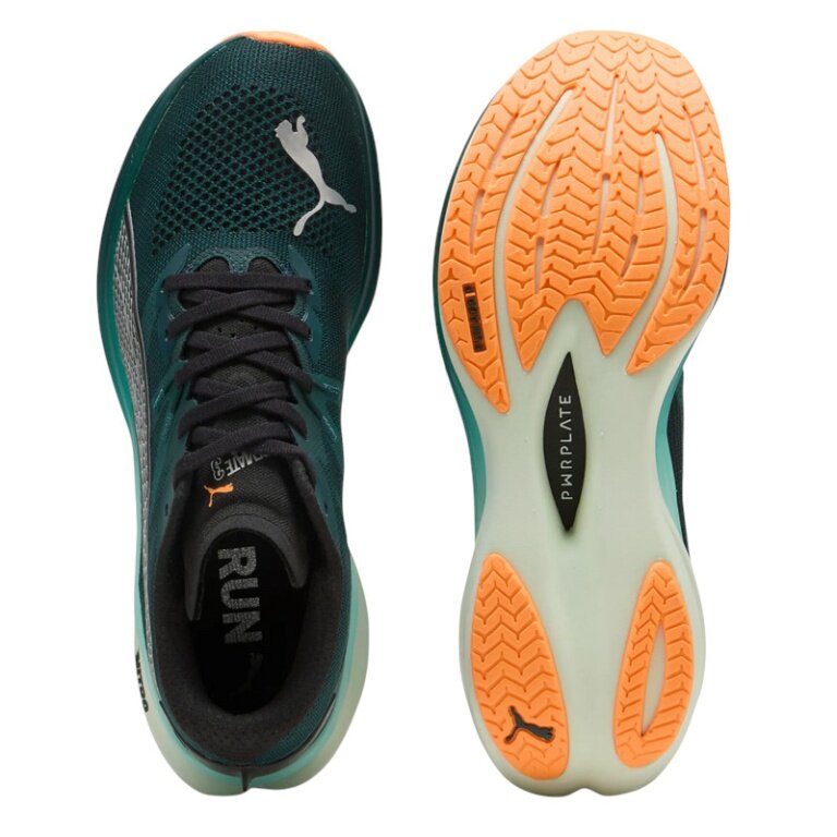 PWRPLATE: Carbon fibre plate for stabilising the midsole while maximising energy transfer.