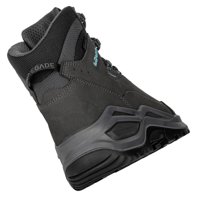 Lowa Renegade Evo Mid GTX Walking Shoes (All-Terrain, Nubuck Leather, Waterproof) asphalt grey/turquoise Ladies