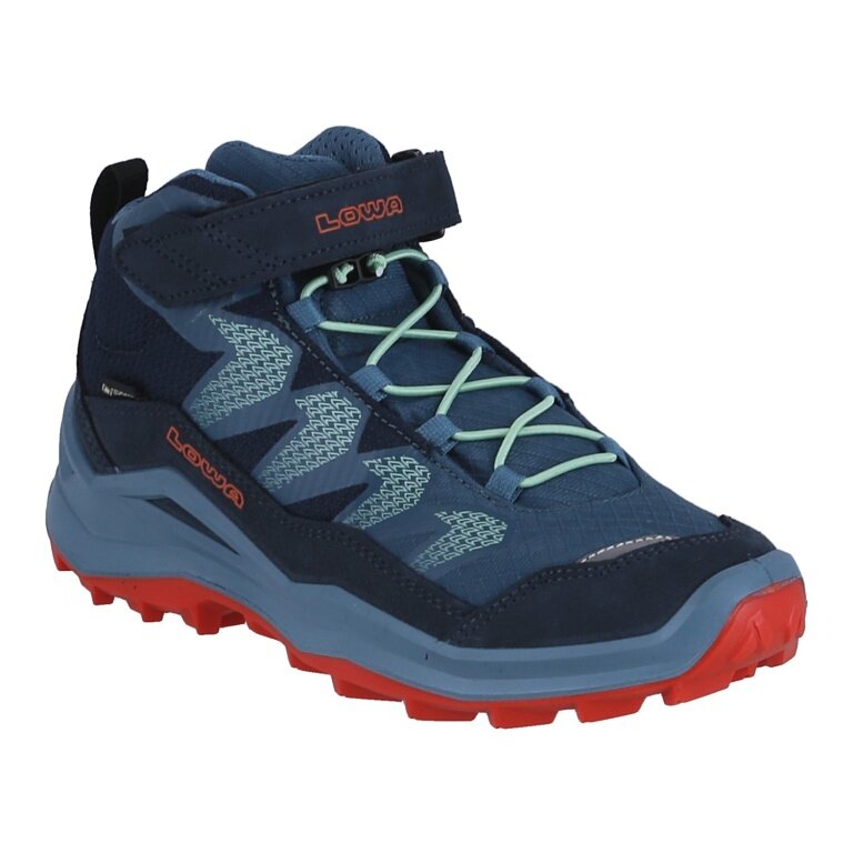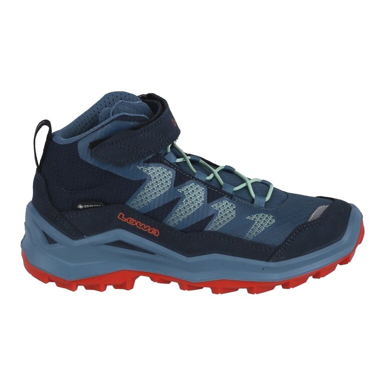 Lowa Maddox Pro Mid GTX Velcro Junior Hiking Shoes (Textile/Suede, Velcro Fastening, Waterproof) navy blue/grey blue Children