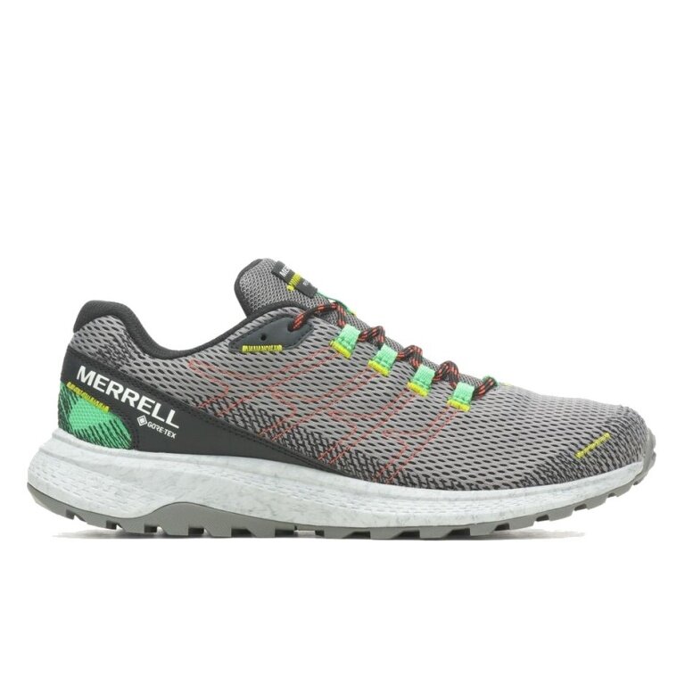 ideal for fast runs on solid trails, the Merrell running shoes for men FLY STRIKE GTX with a waterproof GORE-TEX® membrane