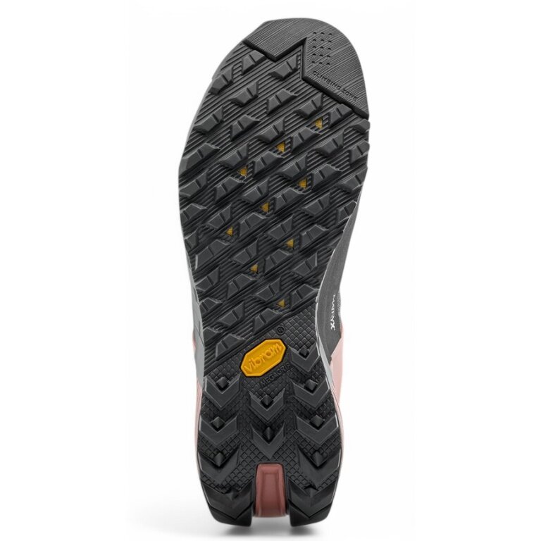 Our revised 3F system comes into play, which wraps around the ankle area and the foot from the outside to promote mobility, while the Gravity rand protects the foot from rocks and debris.