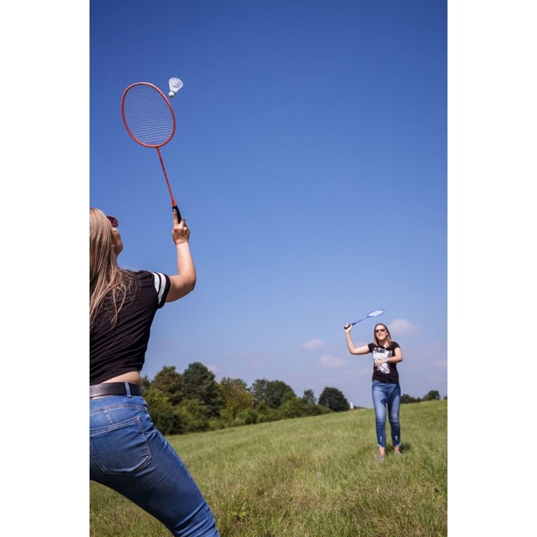 - Badminton Set sunflex MATCHMAKER 2 PRO with 2 modern rackets, 2 shuttlecocks and a net with posts in a practical nylon carrying bag