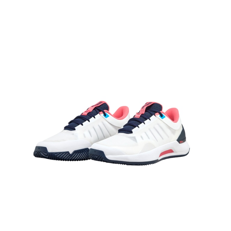 tournament-ready tennis shoe for clay courts, with a design specifically developed for women – fast, responsive and comfortable at any competitive level