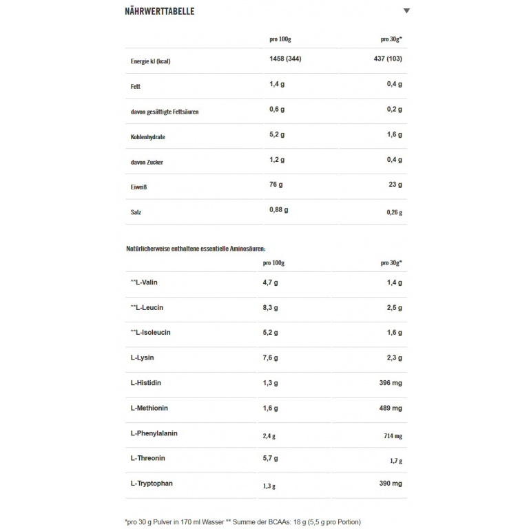 - Whey protein isolate is a quickly absorbed protein source by the body and provides important amino acids, is sugar- and fat-free and of the highest quality