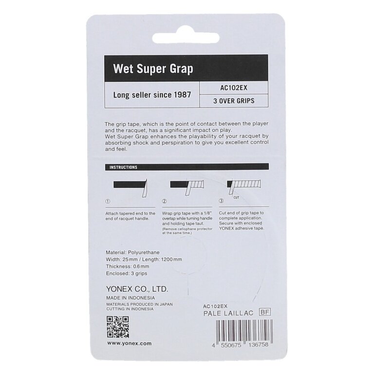 Yonex Overgrip Wet Super Grap 0.6mm (Comfort/smooth/lightly adhesive) pale lilac pack of 3