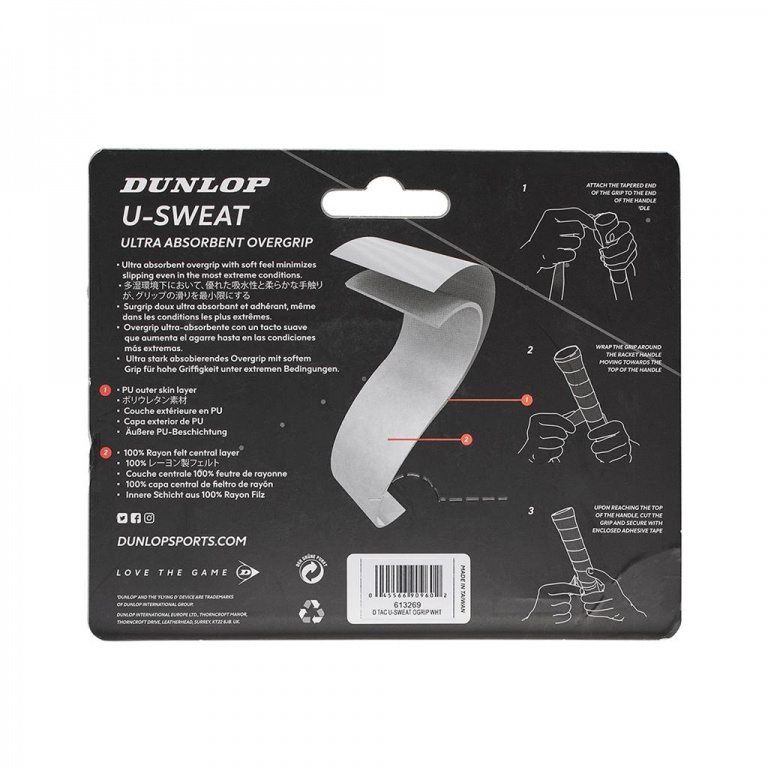 Dunlop Overgrip U Sweat 0.5mm (moisture-absorbing, grippy) white - 3 pieces