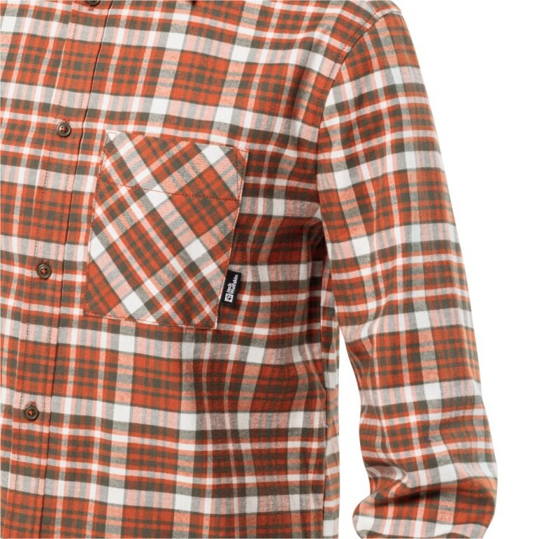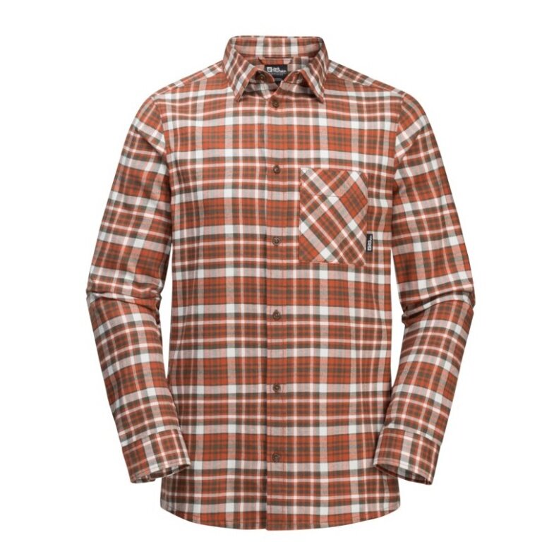 Jack Wolfskin Long Sleeve Bergweg Shirt with Chest Pocket (Flannel Shirt, Organic Cotton) Red/Brown Men